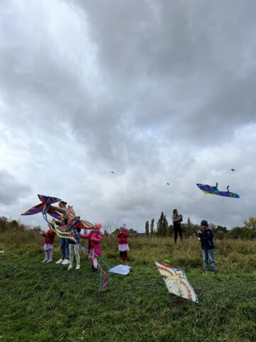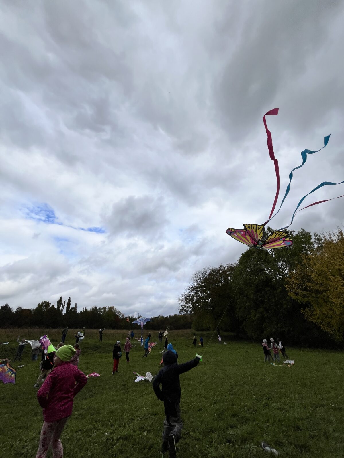 V rámci týdne draků ve školní družině, zorganizovali jsme letošní drakiádu, která se konala 10. 10. 2025 v blízkosti školy. Ještě dopoledne to vypadalo, že foukat ani nezačne a kdo ví, jestli nebude pršet. Nakonec se na nás usmálo štěstí – rozfoukalo se. Děti si na louku přinesly buď draky vlastnoručně vyrobené nebo koupené. I když se některým drakům moc létat nechtělo, několik jich přece jen vzlétlo. Na pomoc nám přišlo pár rodičů či prarodičů, za což jim patří velký díky.